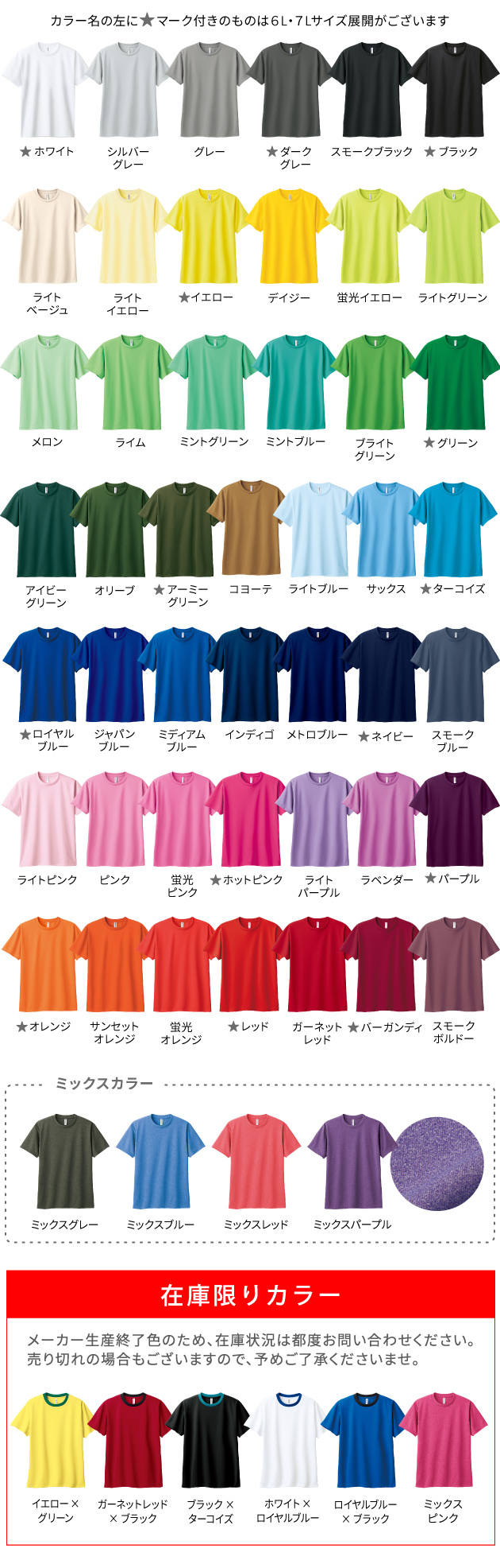 抜群の吸汗性と速乾性!カラー・サイズも圧倒的なラインナップのイチオシ商品! スポーツチームTシャツに大人気です。