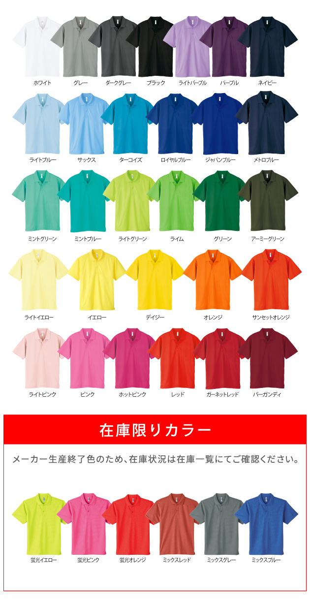 抜群の吸汗性と速乾性!カラー・サイズも圧倒的なイチオシ商品。色もサイズも新商品が登場の グリマーのドライポロシャツ