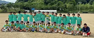練習や大会でチーム揃ったTシャツを着て、頑張ってサッカーに取り組んでいます。