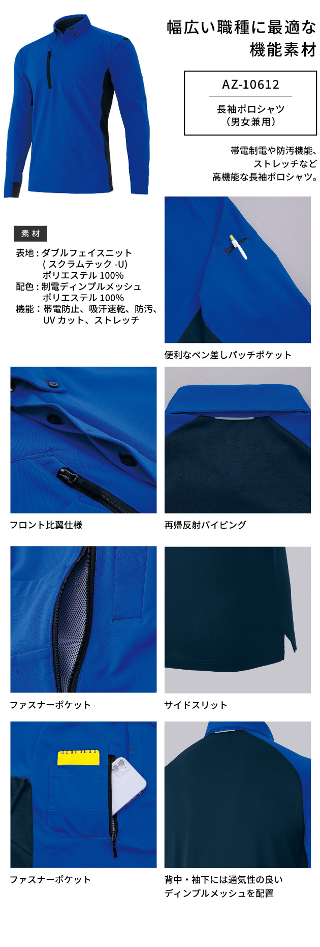 素材:素材:表地:ダブルフェイスニット(スクラムテック-U)ポリエステル100%、帯電防止・ストレッチ 配色:制電ディンプルメッシュ ポリエステル100%