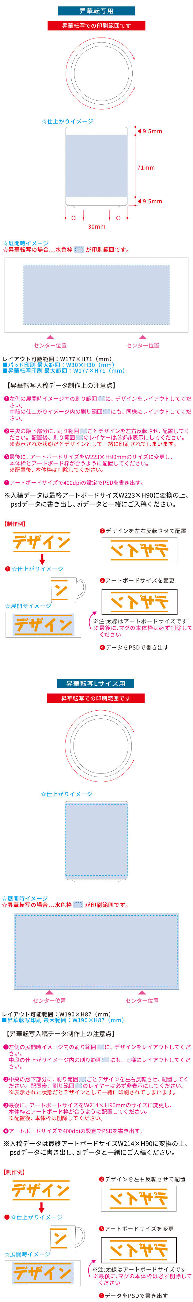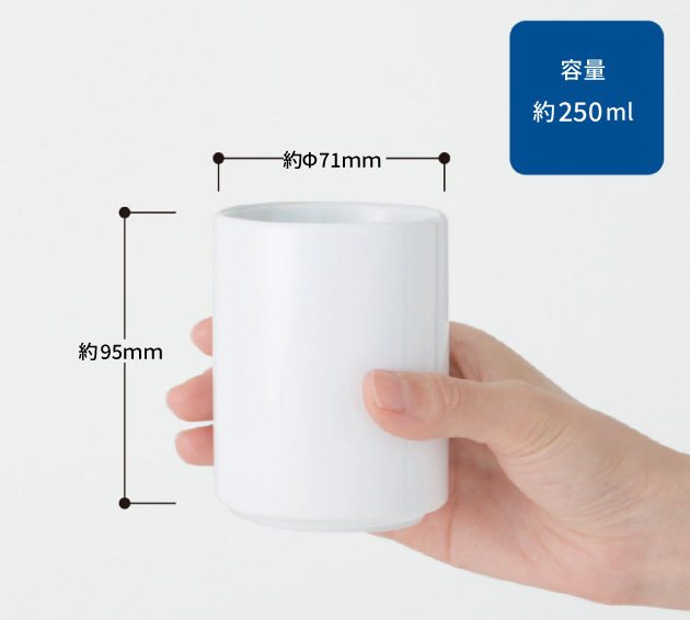 マグカップ類で大きく印刷したい方におすすめ!湯呑みは持ち手がない為、ぐるりとほぼ全周印刷出来ます。