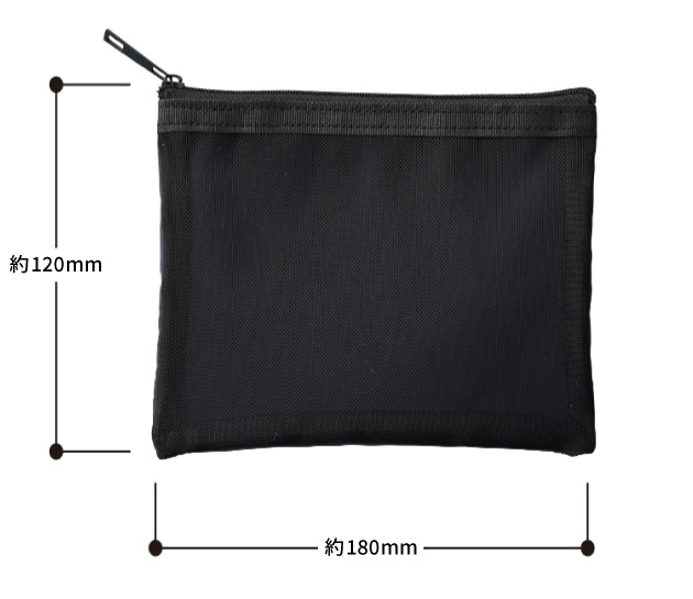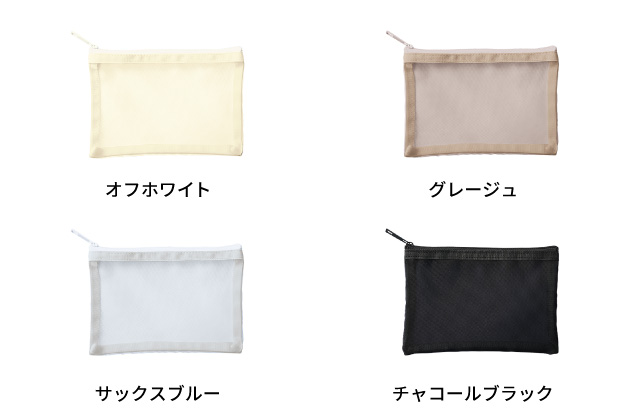 フラットタイプですっきりと使えるメッシュポーチです。表面がメッシュ仕様のため、簡単に中身を確認できトラベルやレジャー用としても使いやすくぴったりです。またハリ感があり、中身がつぶれにくいのもポイントです。SS・S・Mの3サイズ展開で、Sサイズはコスメポーチやペンポーチなどデイリーに使えるちょうどいいサイズ感です。