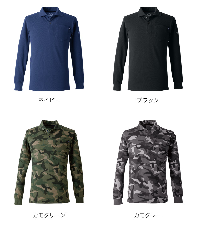 綿混素材特有の汗をよく吸い やわらかな肌触りとしっかりとした丈夫な素材感が人気の長袖ポロシャツです。