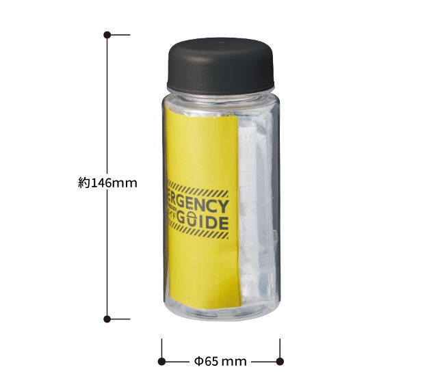 被災時に必要なものがぴったりと入った、コンパクトな防災ボトルセットです。