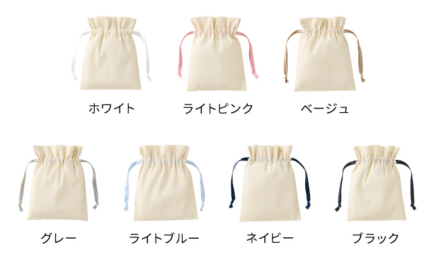 7色展開のカラーリボンがポイントのコットン巾着です。