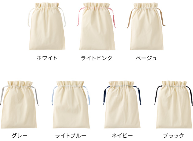 7色展開のカラーリボンがポイントのコットン巾着です。