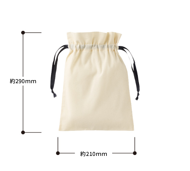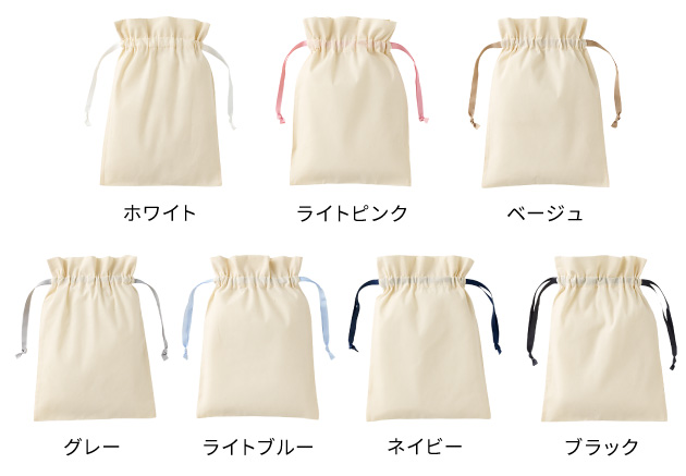 7色展開のカラーリボンがポイントのコットン巾着です。