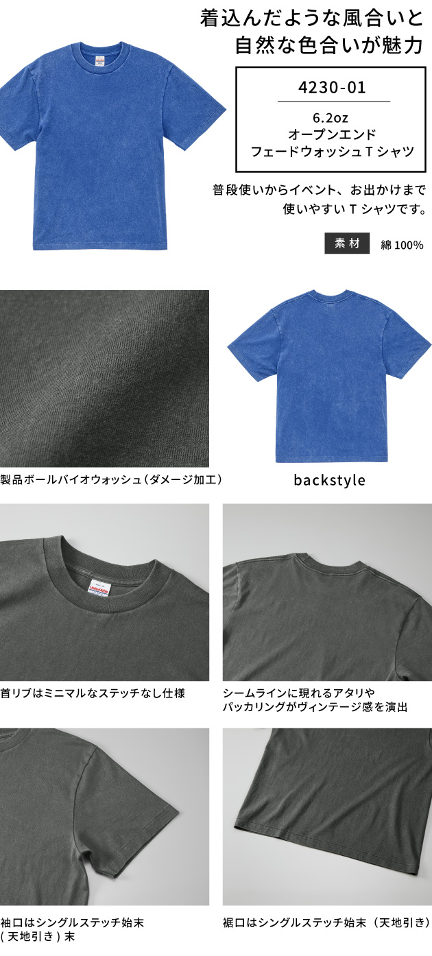 6.2オンス オープンエンド フェードウォッシュ Tシャツ