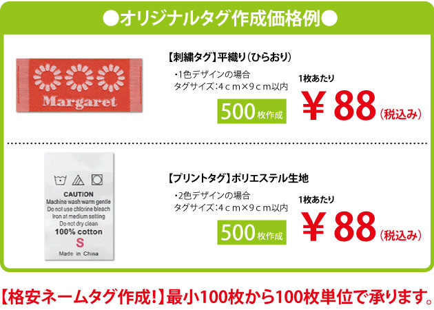 平織・プリントタグは100枚から100枚単位でご注文お受けしております。