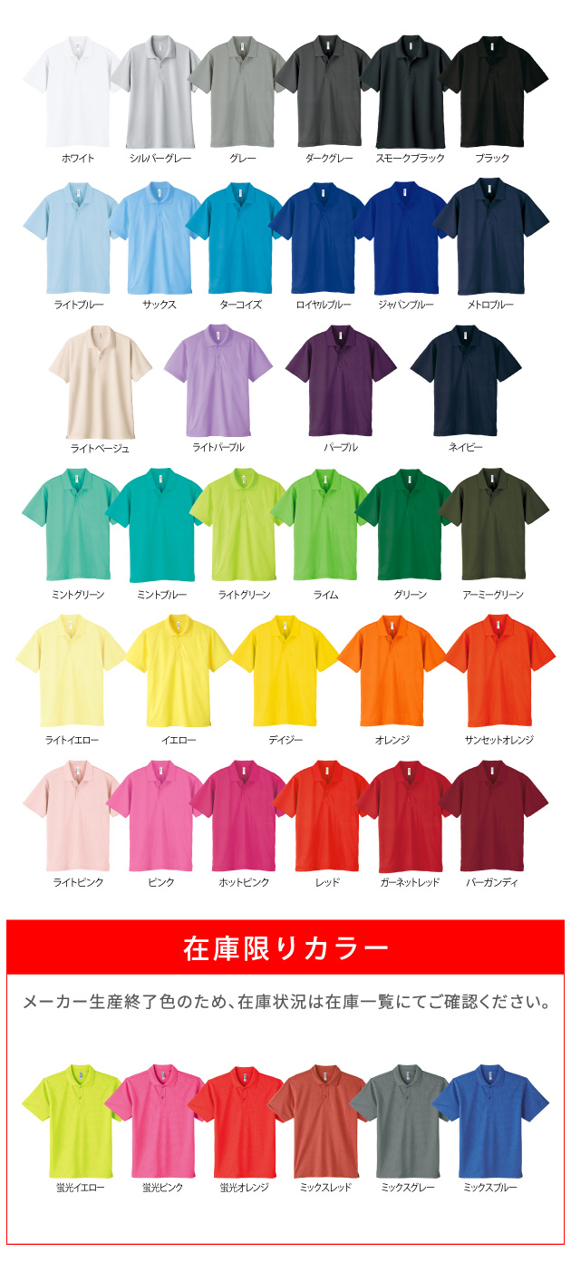 抜群の吸汗性と速乾性!カラー・サイズも圧倒的なイチオシ商品。色もサイズも新商品が登場の グリマーのドライポロシャツ