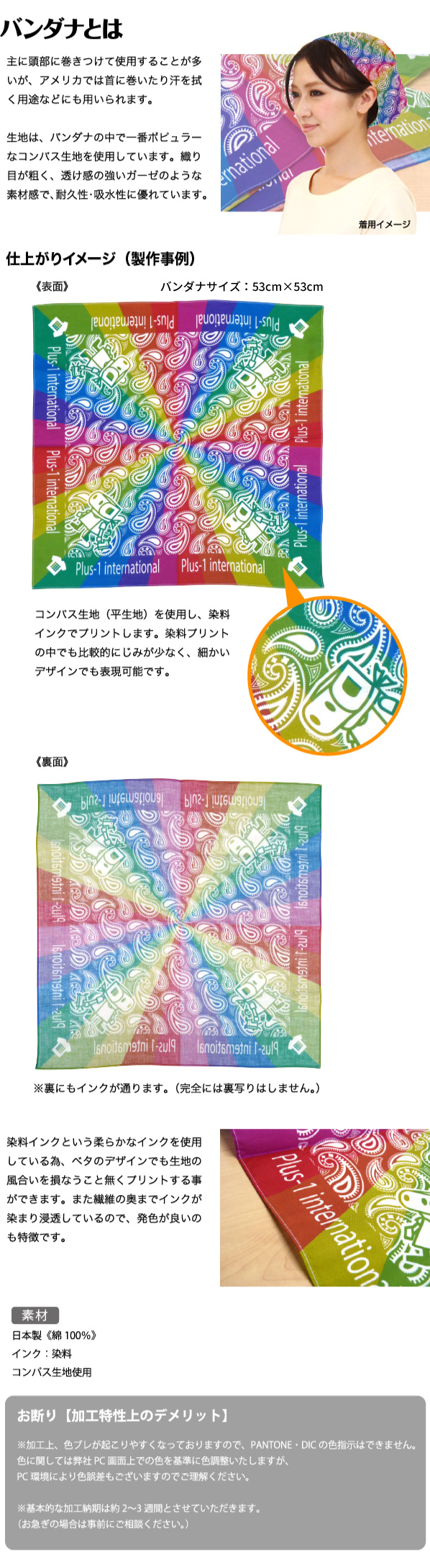 幅広い用途に使える、フルカラーバンダナが10枚から制作可能!安心の日本製。■特別納期…2~3週間で発送