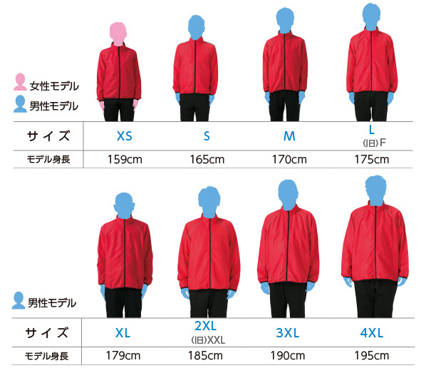 | XS | S | M | L | XL | 2XL (旧XXL) |