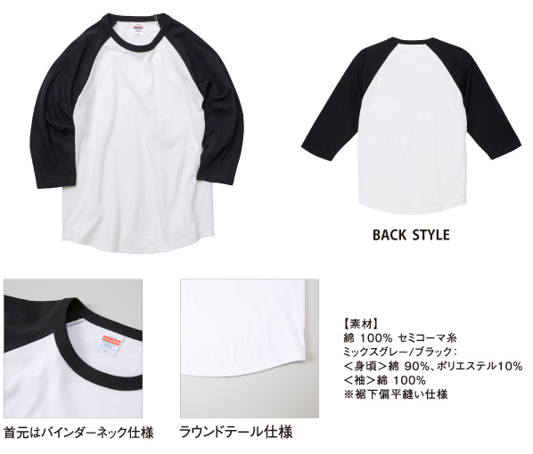 素材:綿100% セミコーマ糸※ミックスグレー/ブラック:<身頃>綿90%、ポリエステル10% <袖>綿100% ※裾下は偏平縫い仕様